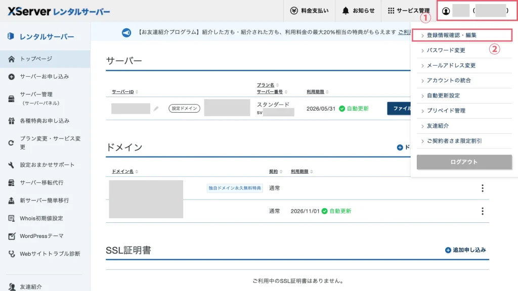 ※サーバーパネルではなくXserverアカウントへのログインが必要です